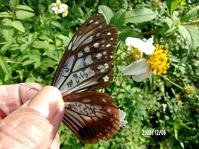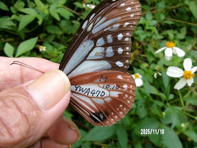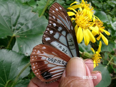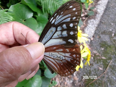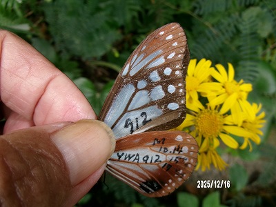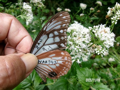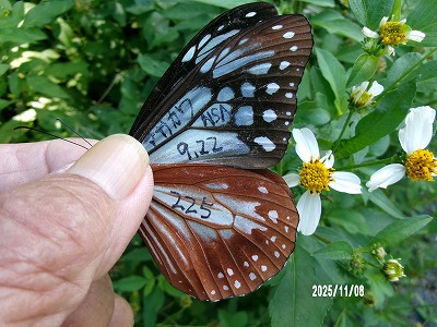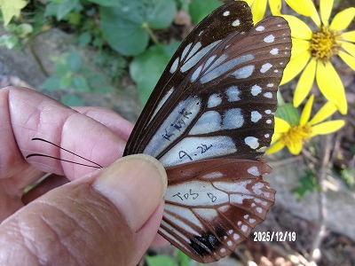 この個体は 木原 奉文 さんが 9月22日 長野県長野市浅川真光寺 浅川ダムフジバカマ苑でフジバカマに飛来をマーキングされたものです。