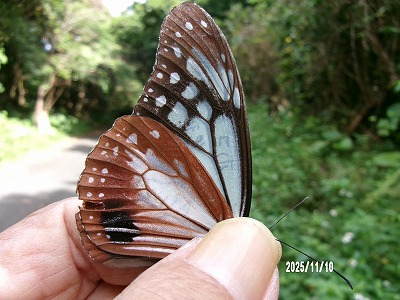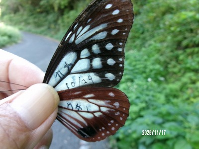この個体は 久木野博孝 さんが 10月29日 鹿児島県南さつま市大浦町亀ヶ岡 でマーキングされたものです。
